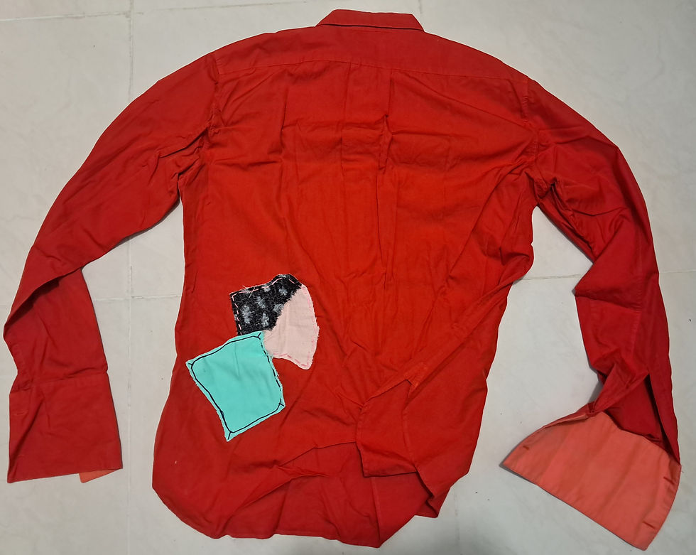 王俊恒Leoでし 繡繡繡,縫縫縫,人生裡,誰會一直異話不說而幫你修補一個個的傷口呢。 -以之前長笛的第三首即興曲——圓舞曲1 的樣本而來縫。 -而後面的拼布,是為了擋住那條 1公分左右的洞。 -洞,被布擋著,但反過來看其實還是破的。